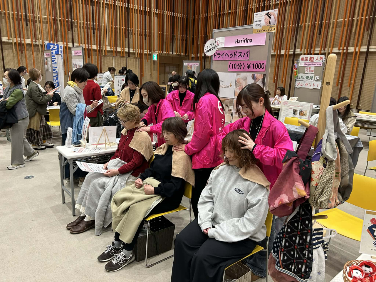 当日は、Haririnaでもご好評をいただいているドライヘッドスパや肩・首まわりのケアをご提供し、多くの皆さまに癒しのひとときをお届けすることができました。